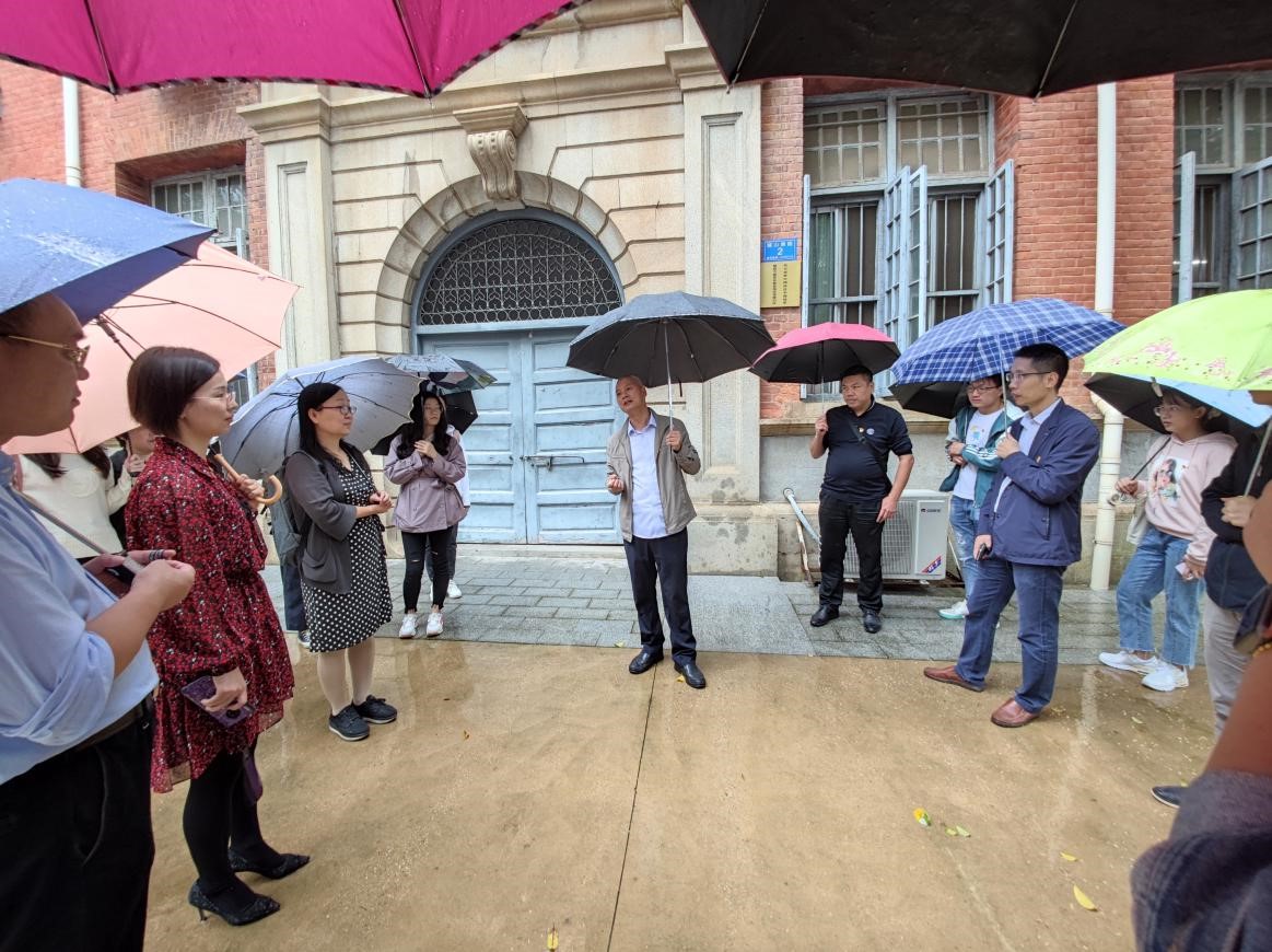 中午1点,纵然雨水不断,大家依然一个不少地准时到达抗日战争中国战区中国陆军第四方面军长衡岳地区受降仪式旧址处集合。龙兵在此处讲授1938年日军轰炸长沙的历史和taptap点点体育校舍被炸历史,勉励全体师生感恩和平、奋发图强。