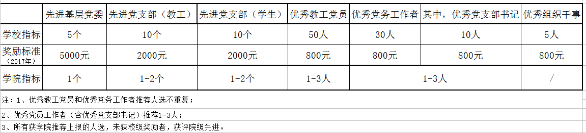 为深入贯彻落实习近平新时代中国特色社会主义思想和党的十九大精神,树立标杆、表彰先进,全面提升基层党组织的组 织力,激励各级党组织和广大党员更好地发挥战斗堡垒和先锋模 范作用,以党建成效推动学校各项事业科学发展,经研究,决定开展优秀共产党员和优秀党务工作者的评选表彰工作。现将有关事项通知如下: