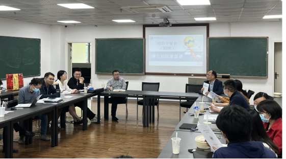 首先,人力资源处张思聪老师作《携手发展 创造未来 大力实施“博士后研究队伍发展计划”》的专题宣讲报告。她详细介绍了学校博士后流动站基本情况、相关政策文件、博士后招收类型、薪酬待遇和福利、博士后期间可以申请的基金项目等,重点介绍了“博新计划”和博士后引进项目的政策、待遇、申报要求等,着重强调了要发挥导师主体作用。