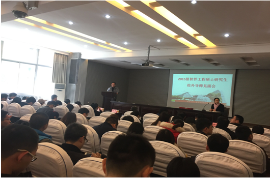 数学院院长蒋月评代表学院致欢迎词,对校外企业能够支持高校加强人才培养予以感谢,提出了大数据时代搭建校企合作平台,提升学院应用研究能力的重要性,并强调了研究生培养环节中校外导师在学生实习实践等环节的重要作用。接着蒋月评院长为新聘任的校外导师颁发了聘书。受聘的专家有:长沙中电软件园有限公司夏利锋总经理、中兴通讯长沙研究所谭芳所长、先导控股集团黄光明总经理、长沙高新区管委会杨金林党组成员、湖南星汉科技有限公司黄力元总经理、香港新世界集团湖南成功新世纪投资有限公司陶震副总经理、北京爱塞立有限公司王先群副总经理、中国电信长沙分公司江乘东总经理、华青建设工程公司蒙已生总经理、湖南医药学院梁晚明副院长、湖南海萌集团郑海斌总经理、中国银行湖南省分行营业部李卫主管、长沙市轨道集团谷志勇副总经理等13位专家。随后副院长雷渊介绍校外指导教师工作职责。