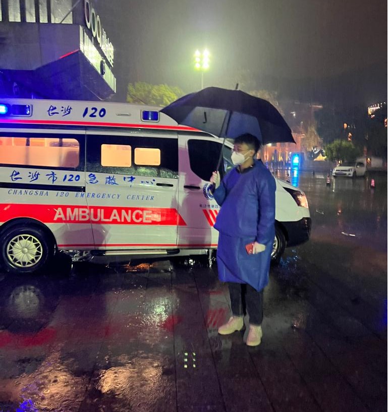 凌晨送发热同学去医院。